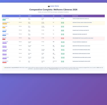 đ Tabela Comparativa: VisĂŁo Geral das Melhores CĂąmeras 2026